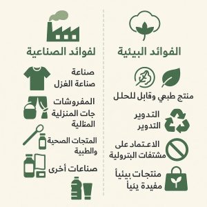 فالقطن ليس مجرد محصول زراعي – بل هو مورد صناعي وبيئي قيّم. فهي تلعب دورًا في المنتجات التي تؤثر على حياتنا اليومية وتوفر بدائل مستدامة وصديقة للبيئة للألياف الصناعية.
